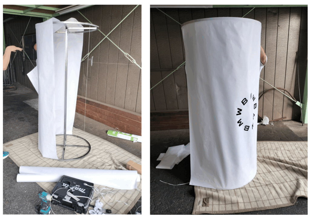 イベント会社さまのほうでワーロン(和紙風素材)を巻き、検証作業を実施。