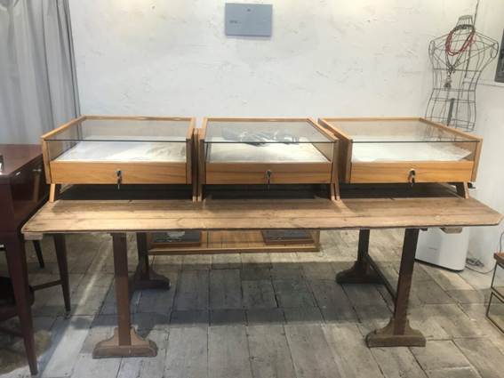 その中でも今日は、アクセサリーなどを陳列するテーブルタイプの引出しになっているガラスショーケースをご紹介します。