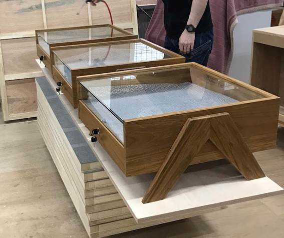 アクセサリーを並べるための引出し型のショーケースを作りたいとのことでした。