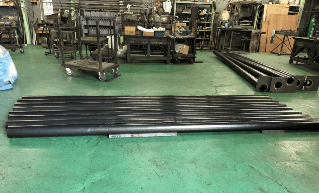 先日、スチール工場へ打ち合わせに伺った際、製作途中の大型パイプが整然と並んでいる様子を目にしました。