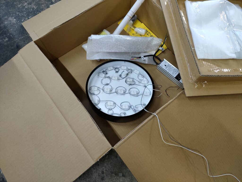 梱包を開けて、LEDが正常に点灯するか、破損や変形がないかを確認します。