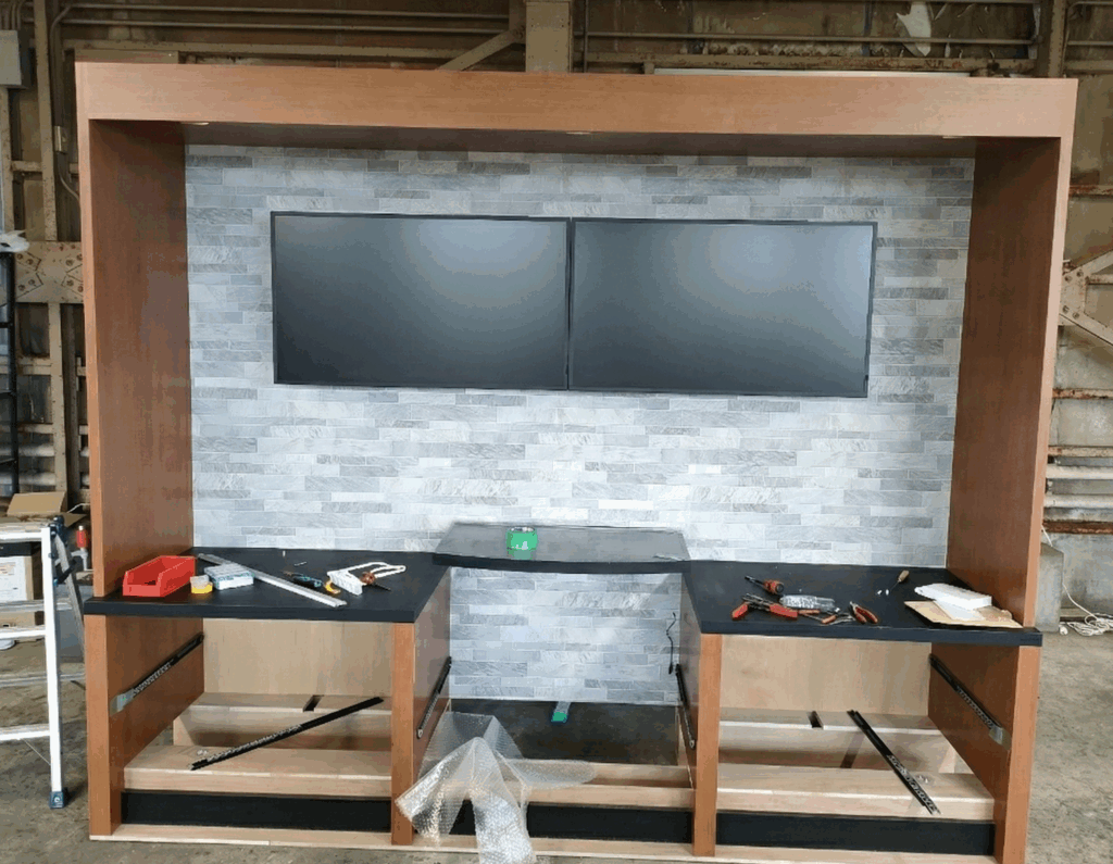 木工本体の入荷から、クロス・サイン・モニター・照明の取付け、そして店舗での設置まで、