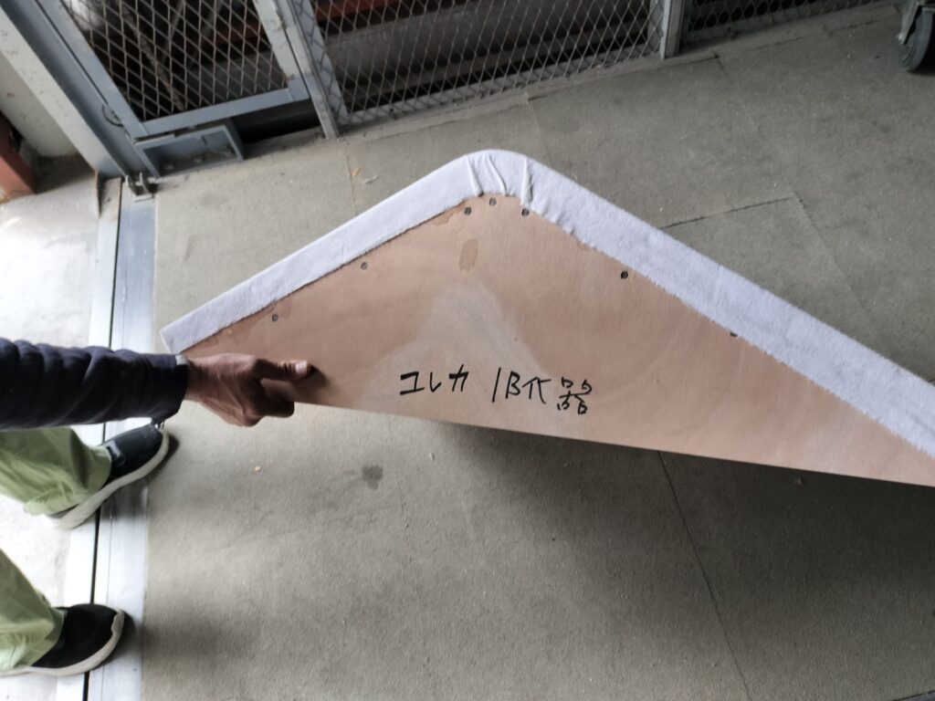 引き違い扉はクリアランスがシビアなので、今回は実寸(1/1)図面をプリントアウトして、現物を当てながら確認しました。