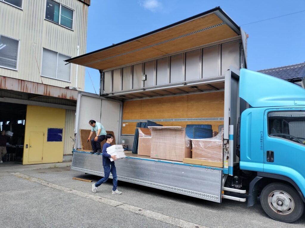 検品を通過した什器は梱包・配送され、全国各地の店舗や展示会場へ。東京本社・富山・大阪の3拠点体制で、全国への迅速な納品を実現しています。
