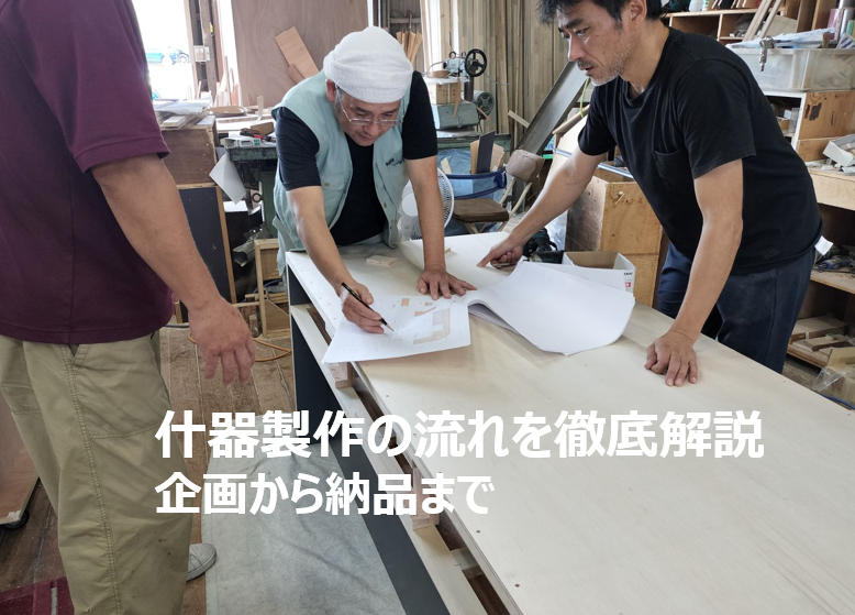 什器製作の流れは「企画 → 設計 → 製作 → アッセンブリー → 納品」というシンプルなプロセスですが、各段階での丁寧な対応が品質を左右します。特に富山アッセンブリーセンターでの組立・検品は、納品後の安心感を担保する大切な工程です。