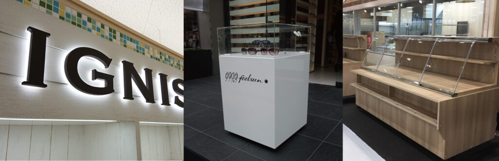 - 商品の魅力を引き立てるショーケースやディスプレイ棚