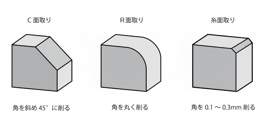 角をほんのわずか0.1~0.3mmほど削る、ごく小さな面取りです。
