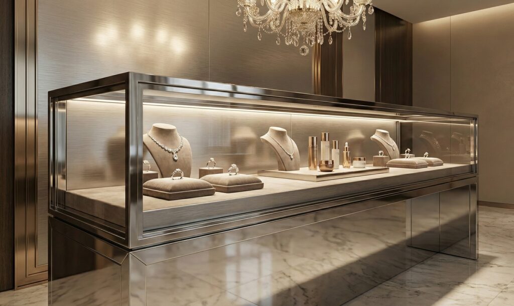 同じ形状の什器でも、仕上げを変えるだけで「高級ジュエリーショップ」に合うのか、「インダストリアルなカフェ」に合うのかがガラリと変わります。