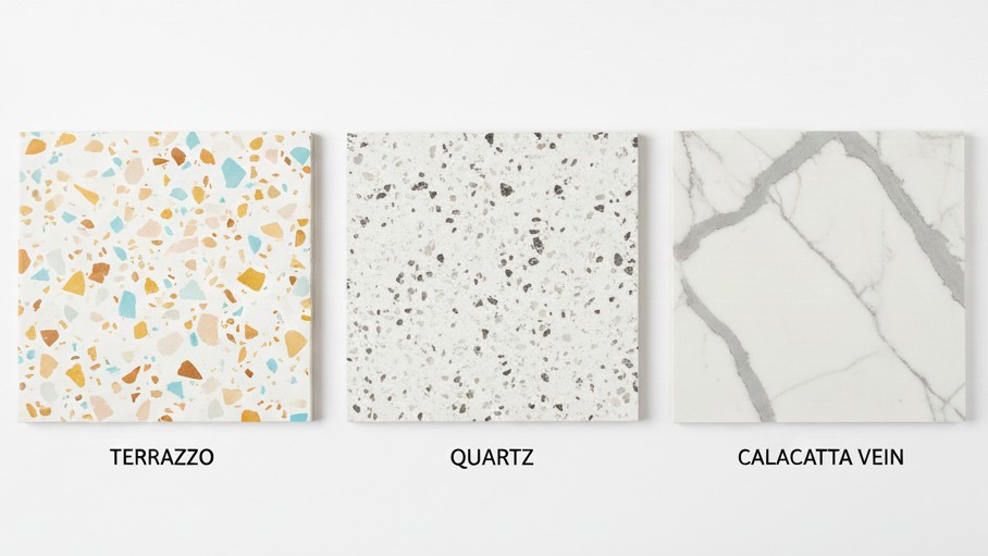 「天然石の弱点(吸水性・脆さ)」を克服しつつ、「天然石の美しさ」を持たせたハイブリッド素材です。特に天然クォーツを主成分とするエンジニアドストーンが主流です。