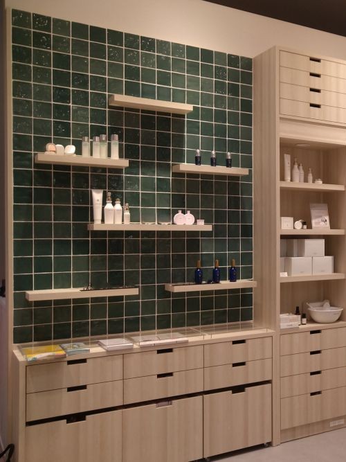 特注什器の素材を掘り下げる本連載。今回は、壁面や床だけでなく、近年はカウンター什器の腰や天板にも多用される「タイル」について解説します。