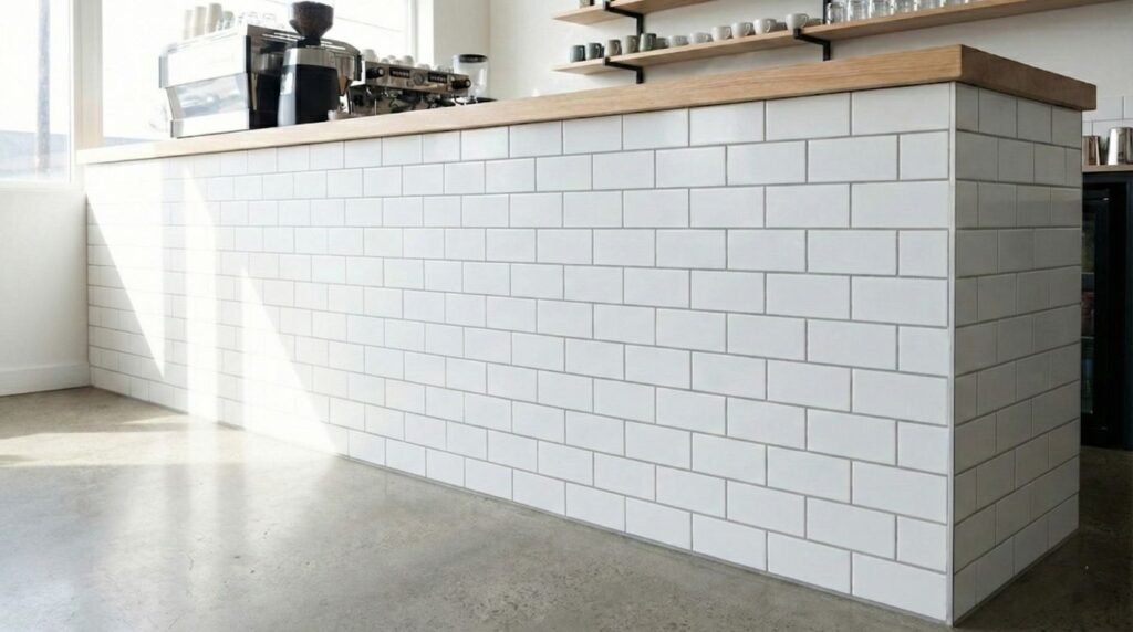 - 什器への用途: 【腰壁・ディスプレイ台の側面】など、水や衝撃が直接かからない垂直面。内装壁用タイル(サブウェイタイルなど)の多くがこれにあたります。