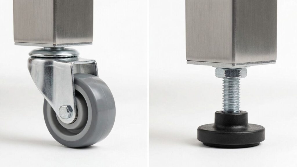 什器を床に設置する際、その「足元」をどう設計するかは、店舗の運用(レイアウト変更の頻度や清掃のしやすさ)に直結します。