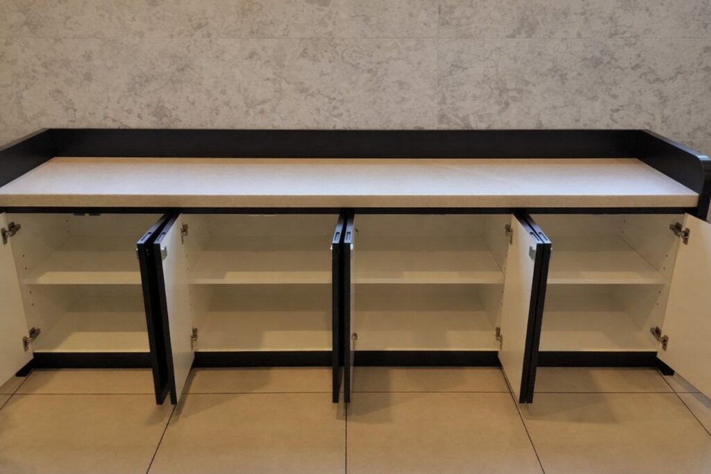 金物パーツは、什器の製作コストに直結する部分です。例えば、すべての引出しをソフトクローズ付きのベアリングレールにし、高耐荷重の隠しキャスターを採用すれば、当然コストは上がります。