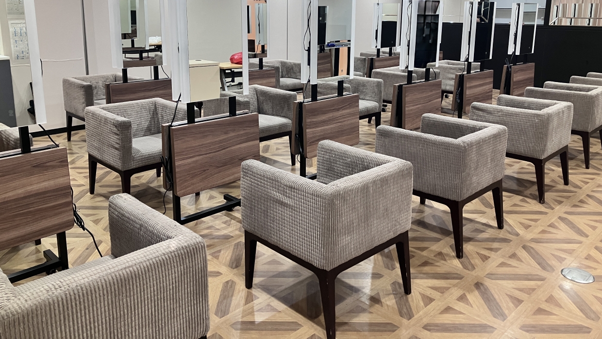 依頼内容:既存の鏡台を一新したい。教室を広く使えるようにしたい。
