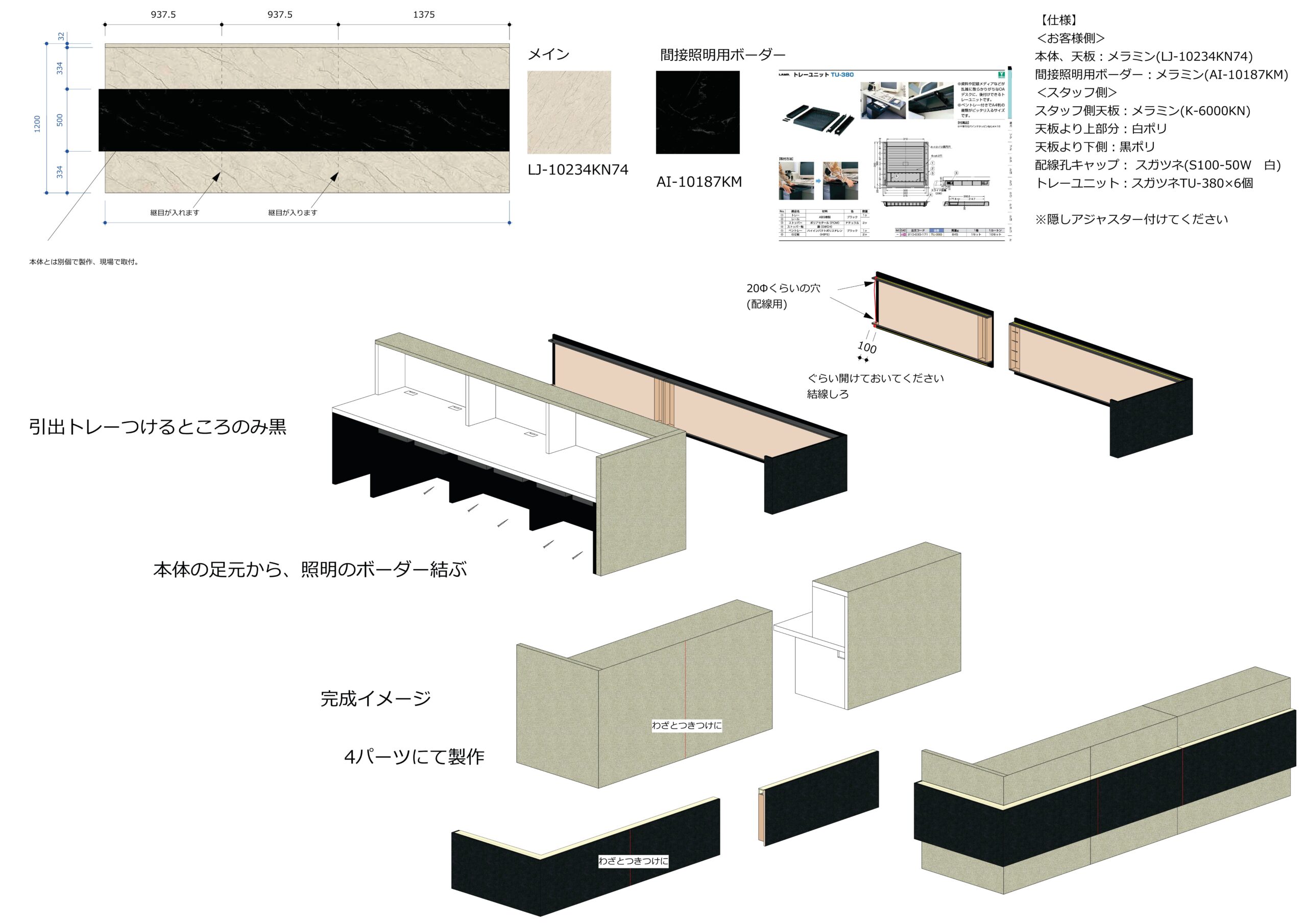 そのためカウンターを分割構造で製作し、現場で組み上げることで搬入時の問題をクリアしました。