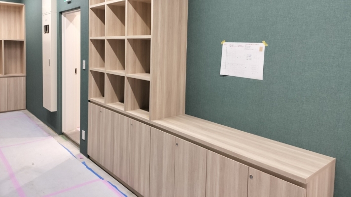 お客様がお持ちの木工什器は両側に棚板を乗せるための桟がついている形状でした。