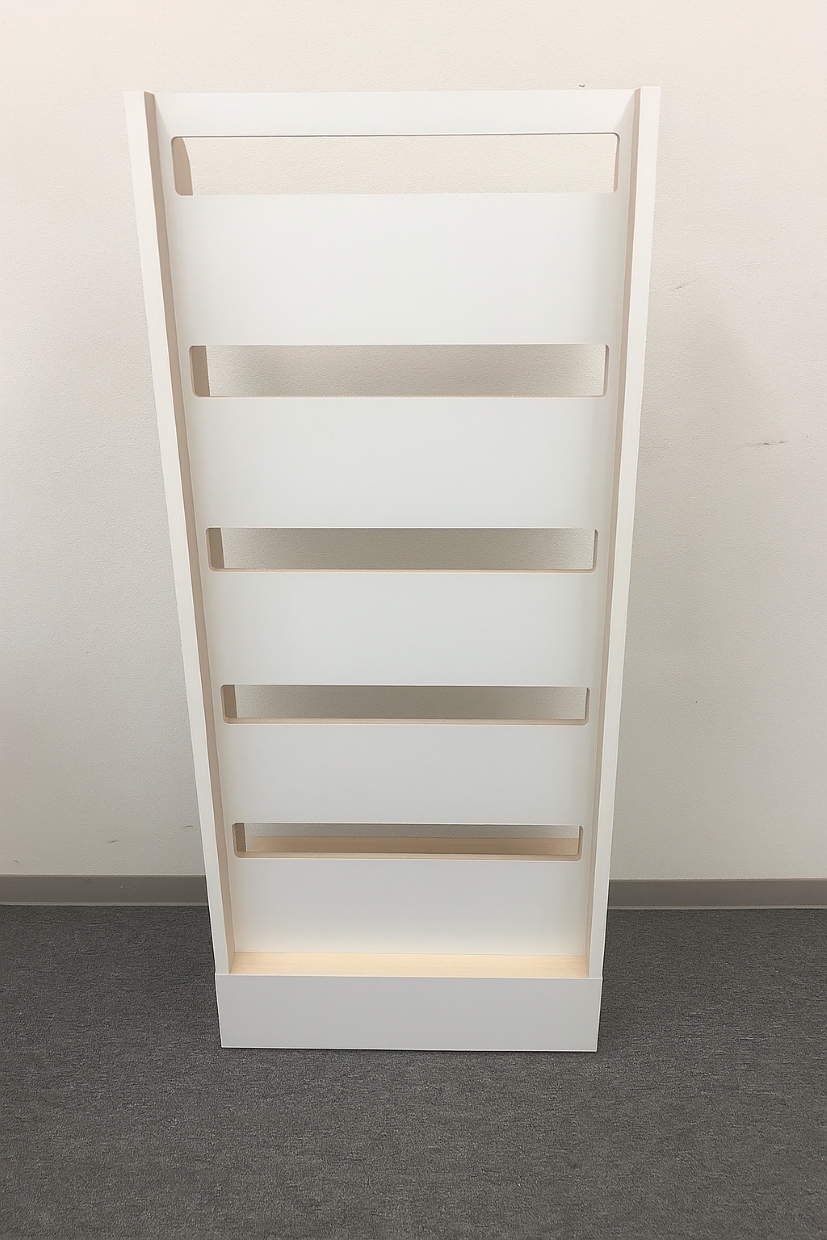 今回製作したのは、腕時計用ベルトを陳列・販売するための特注木製什器です。