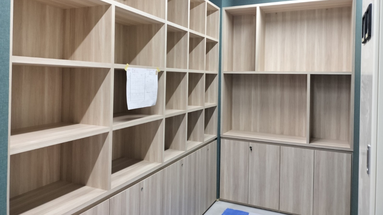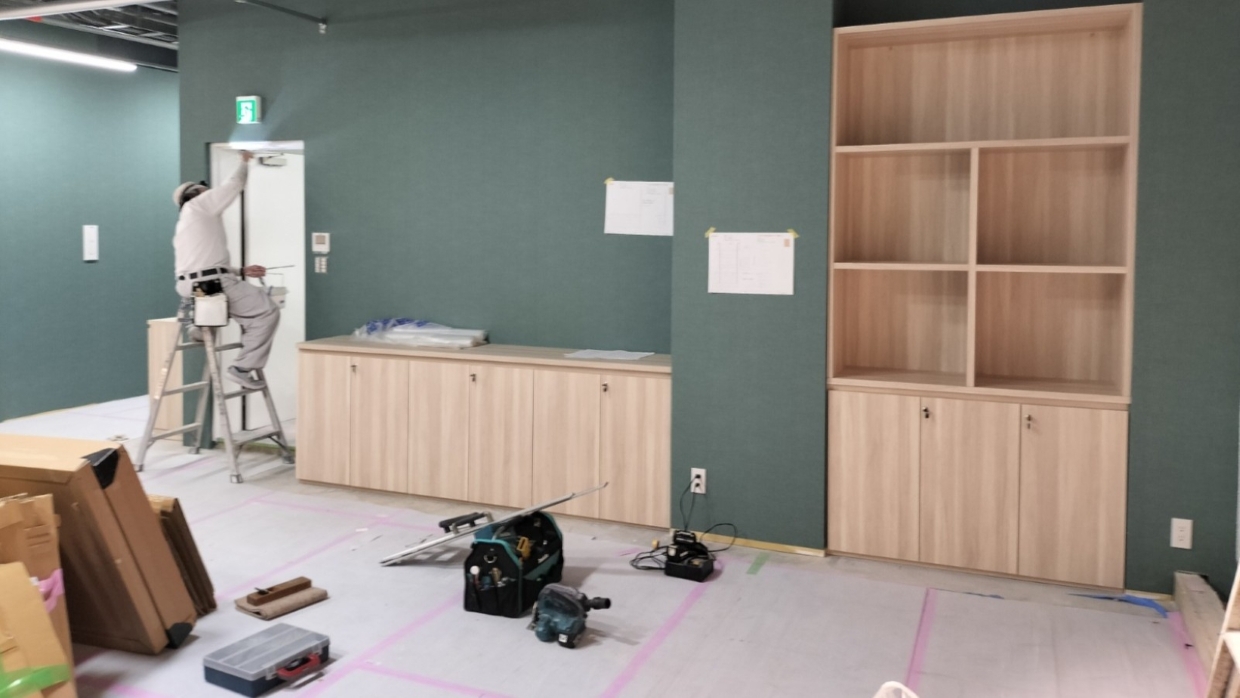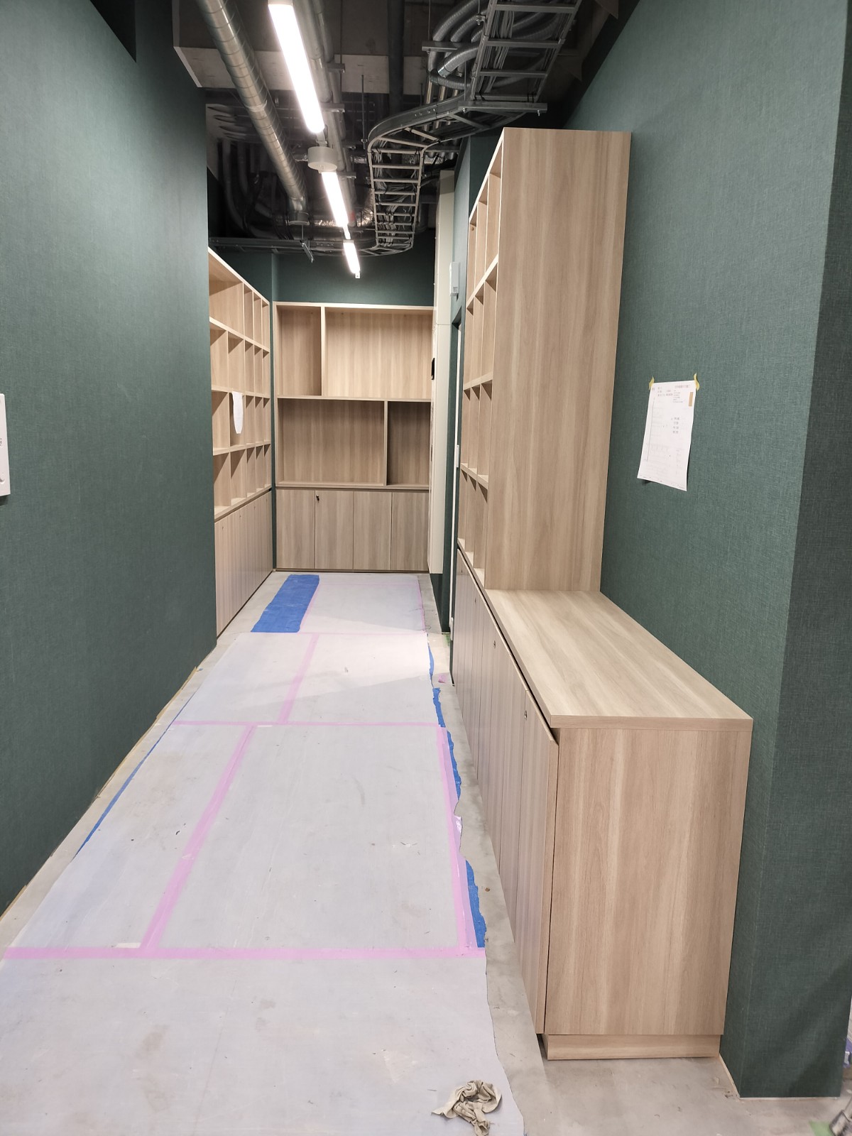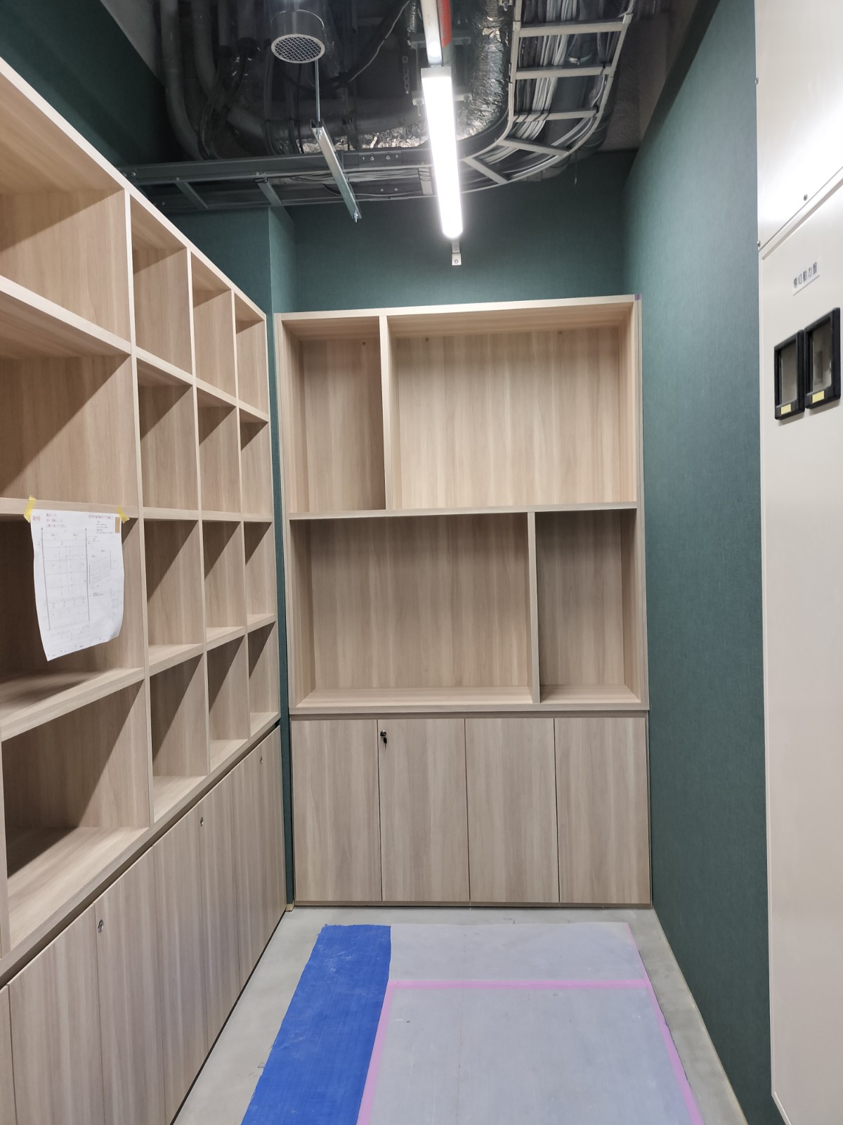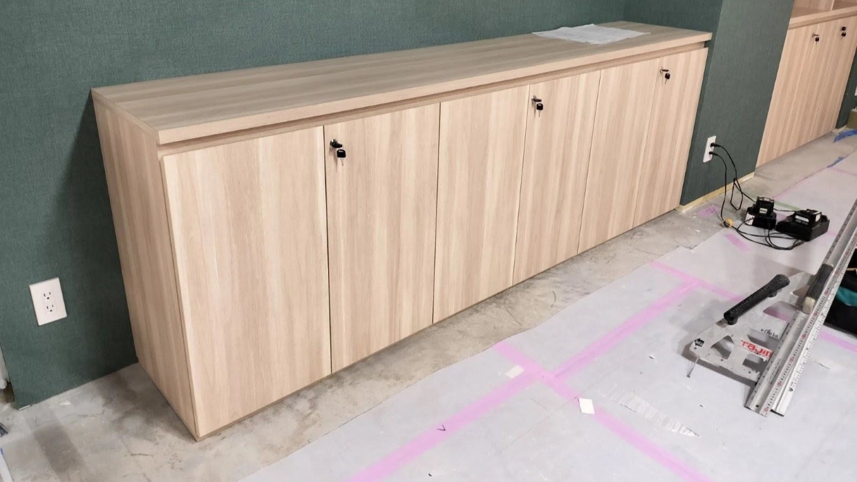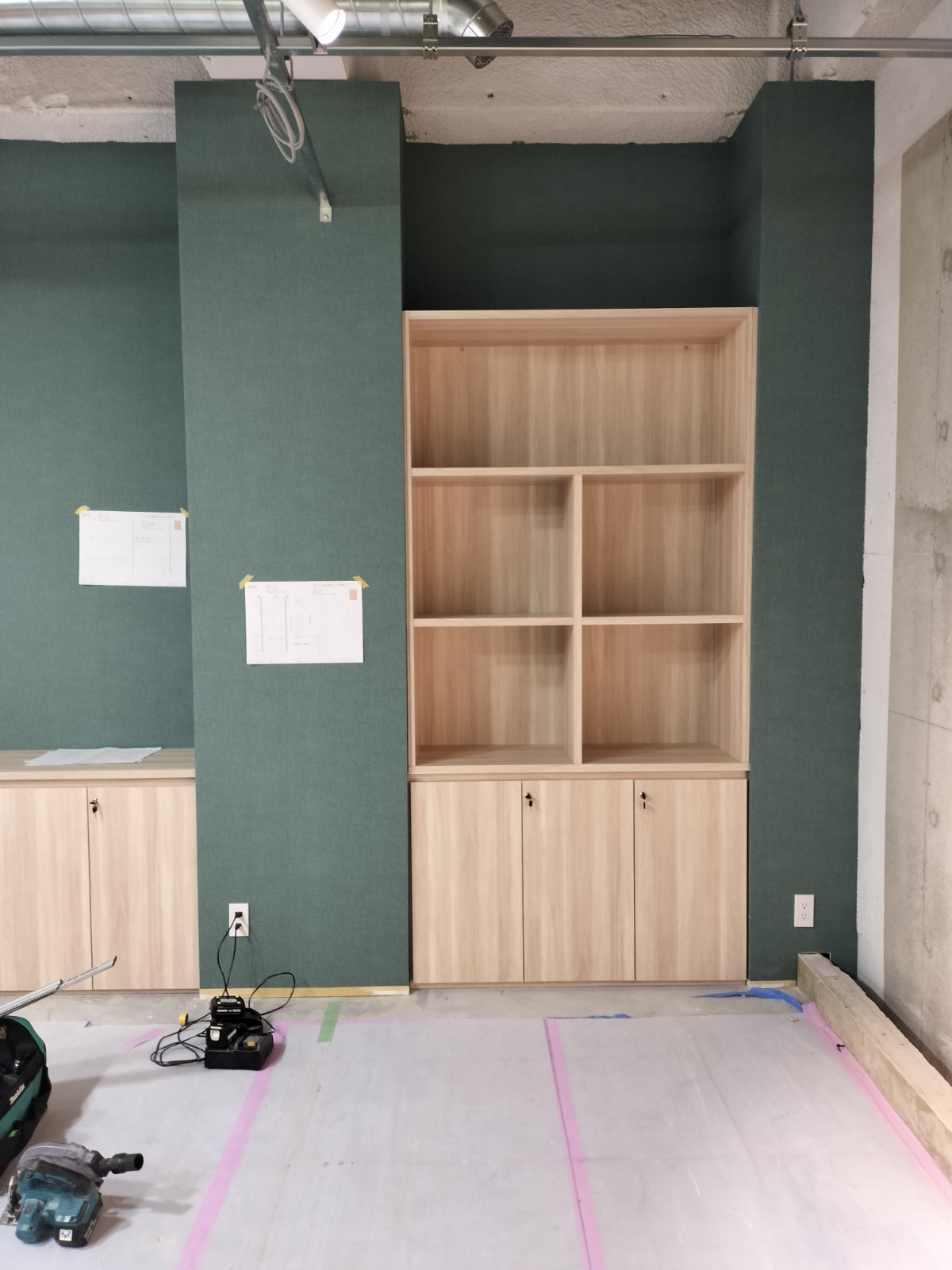今回製作したのは、オフィスに設置する特注サイズの壁面収納棚です。