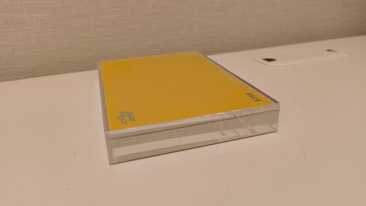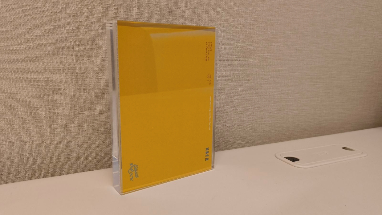 あえて細く薄くすることで、ポストカードがまるでアクリルブロックの中に浮かんでいるように見える設計としました。