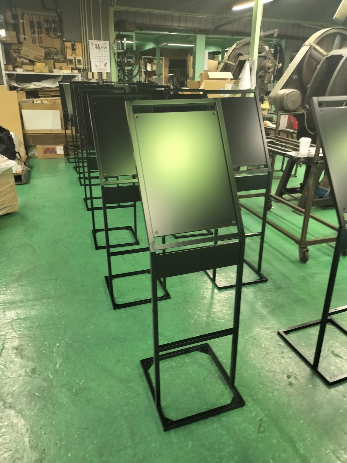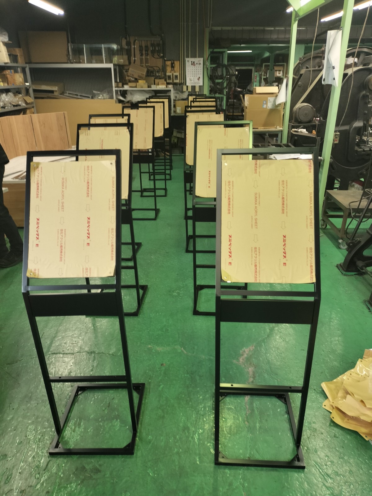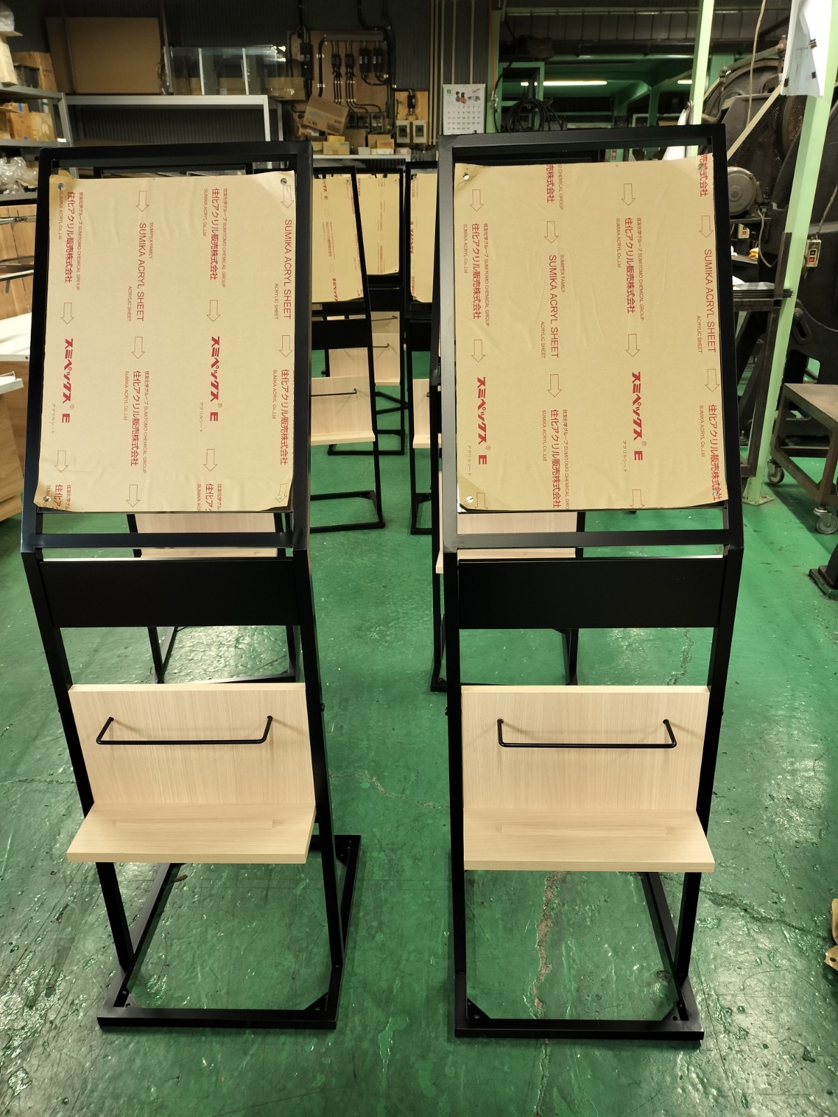 今回製作したのは、展示会や販売会などで製品のスペックを掲示するための特注スチールスタンドです。