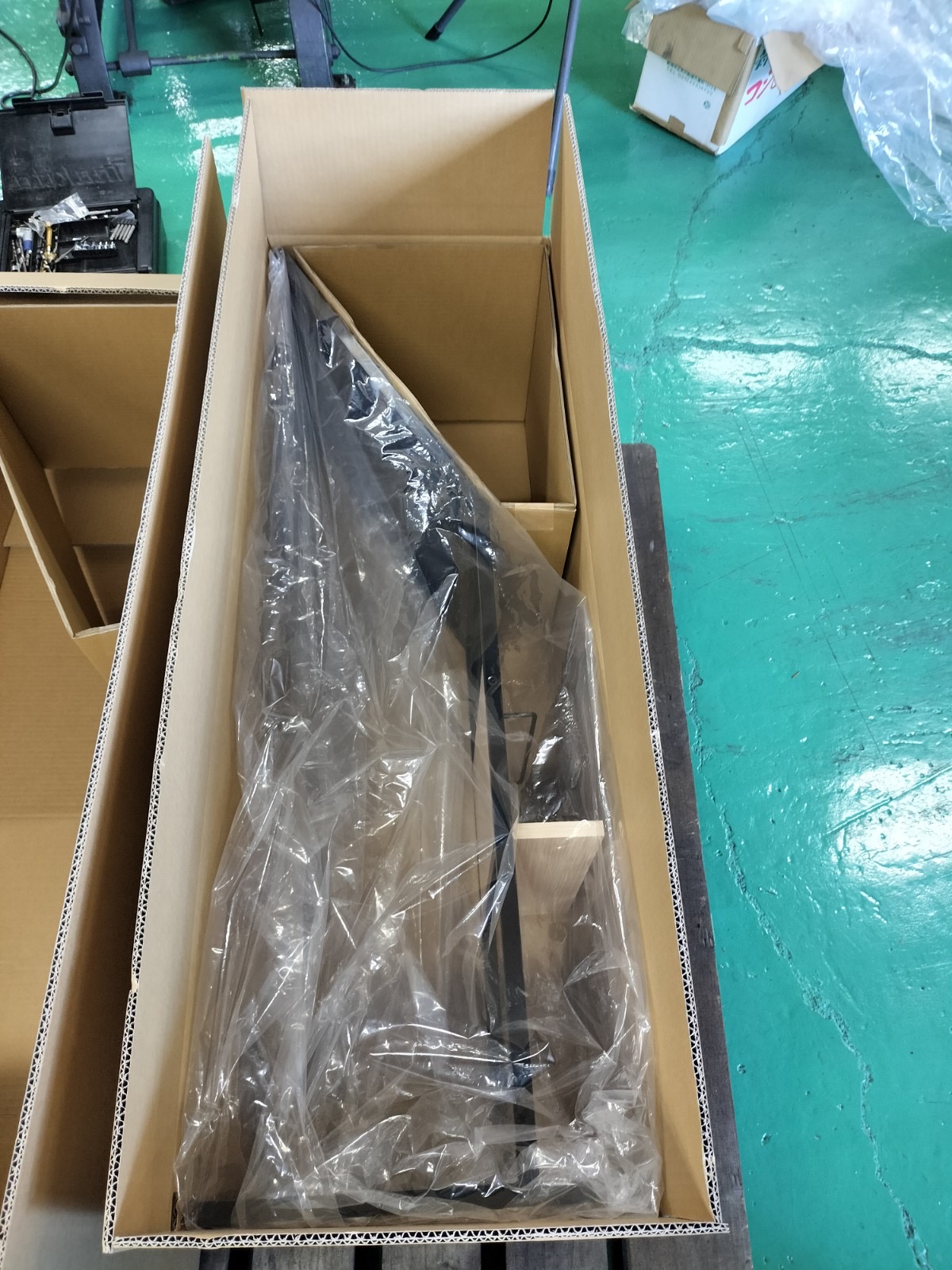 什器の形がいびつなので、動かないようにずれ防止の仕切りも段ボールで製作して梱包しました。