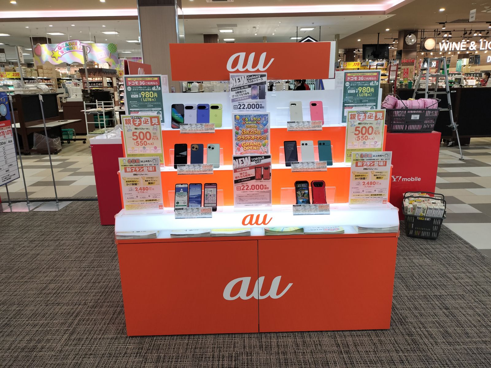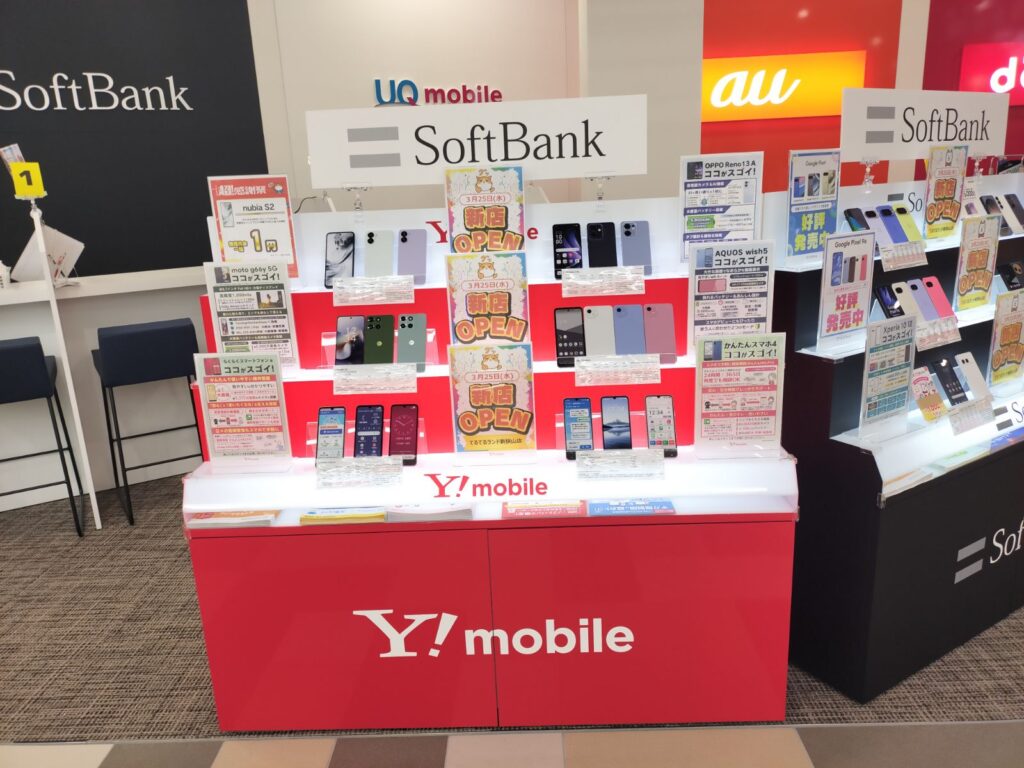 - 遠くから見ても、どのキャリアの売り場かが一目でわかるようにしたい。